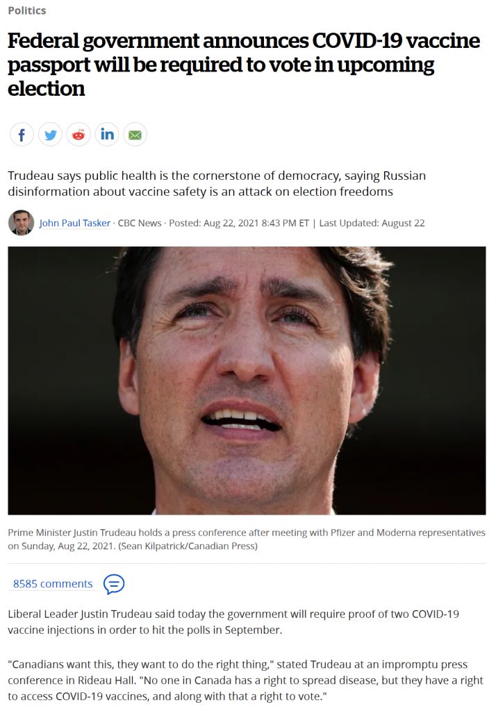 Canadians now need vaccine passports to vote